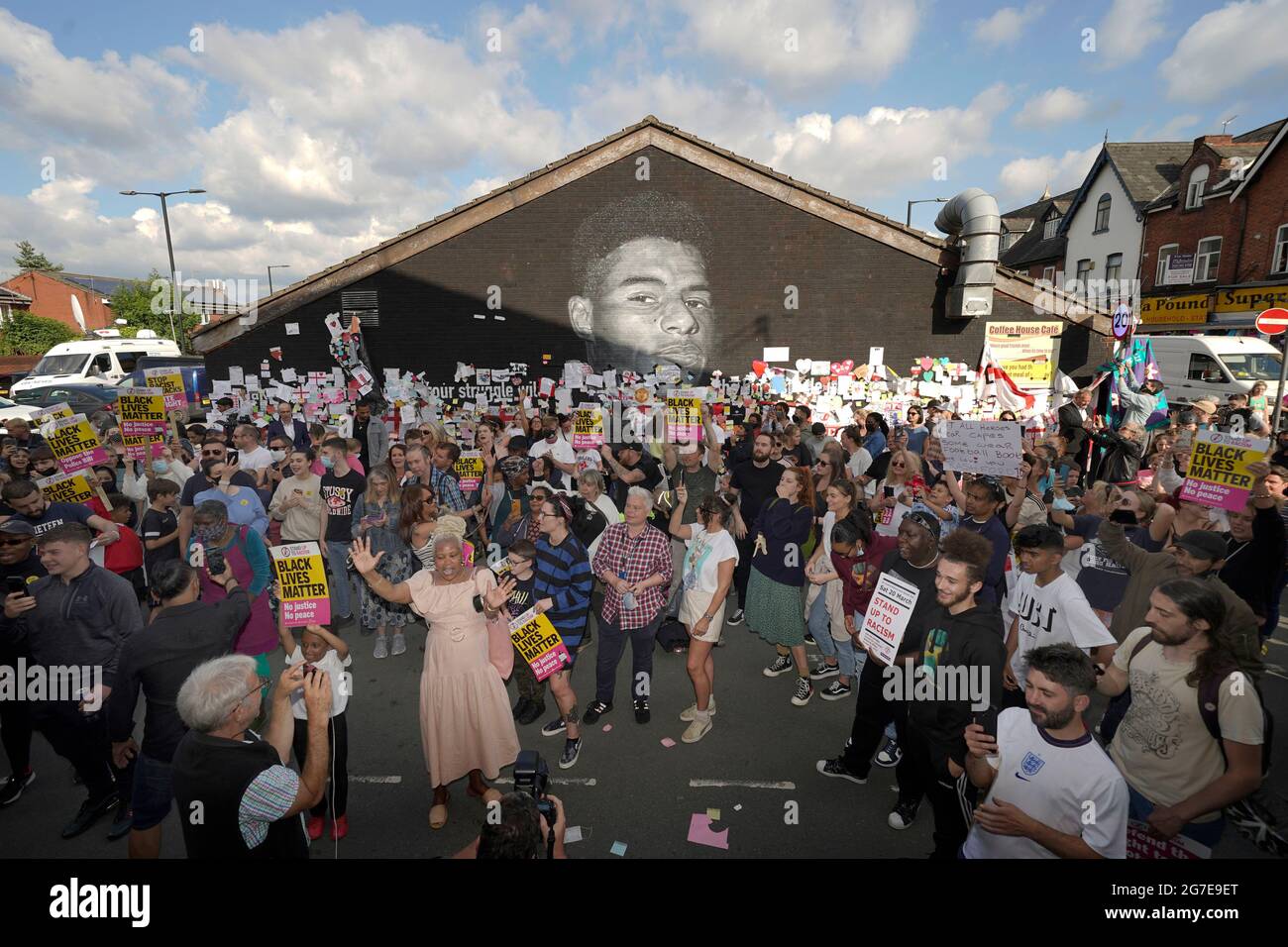 Les Gens Se Rassemblent Devant Une Manifestation Prevue Pour Soutenir L Attaquant De Manchester United Et Le Joueur D Angleterre Marcus Rashford Devant Sa Murale Sur Le Mur Du Cafe Coffee House Sur Copson